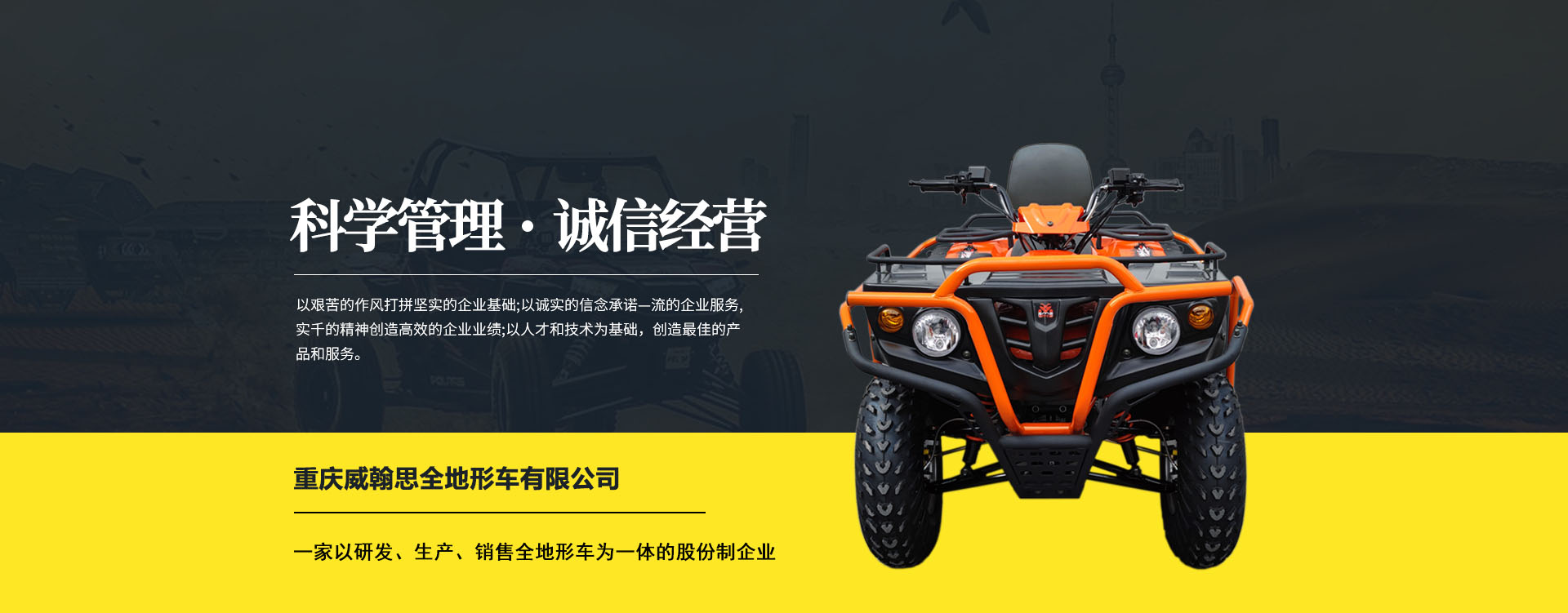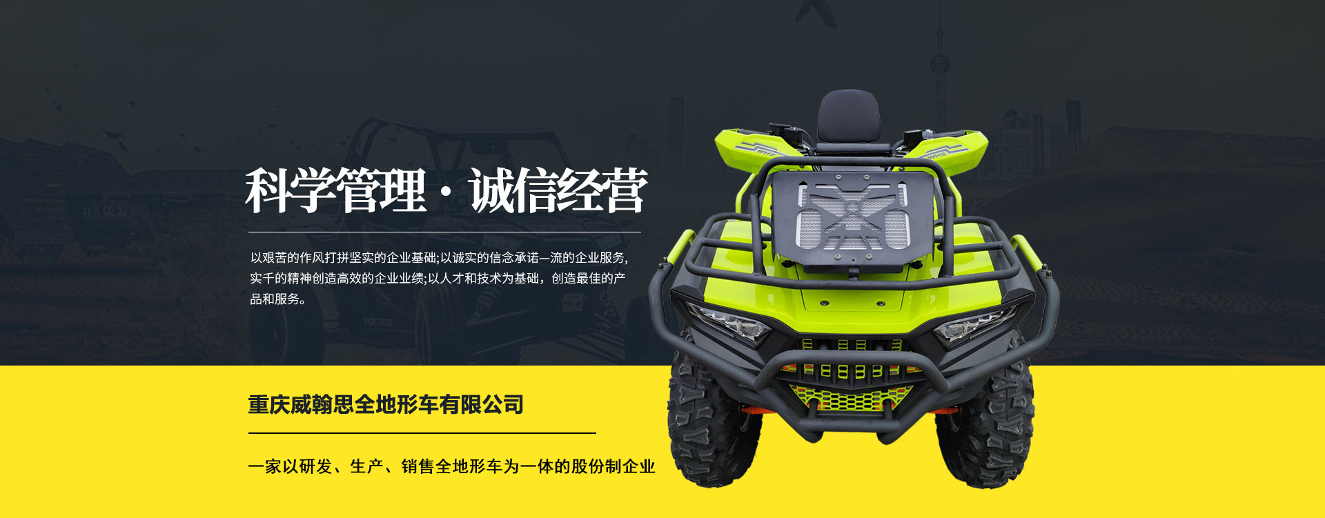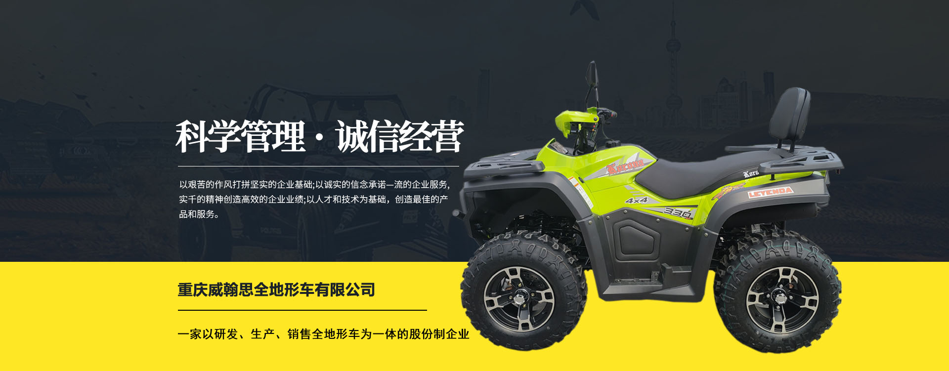 重慶威翰思全地形車有限公司成立于2016年9月,一家以研發(fā)、生產(chǎn)、銷售全地形車為一體的股份制企業(yè)。公司銷售額超過5000萬(wàn)。現(xiàn)有專業(yè)市場(chǎng)售后服務(wù)團(tuán)隊(duì)。公司秉承“敬業(yè)、超越、活力、用戶至上”的企業(yè)精神,“以人為本,合作共贏;”的核心價(jià)值觀,“嚴(yán)格管理創(chuàng)優(yōu)質(zhì)、名牌戰(zhàn)略拓市場(chǎng)”的質(zhì)量方針,使公司一步步邁上新的臺(tái)階。公司與重慶航天巴山摩托車制造公司達(dá)成戰(zhàn)略合作協(xié)議。共同出資致力于沙灘車旅游市場(chǎng)產(chǎn)品研發(fā),項(xiàng)自運(yùn)營(yíng)指導(dǎo),市場(chǎng)維護(hù)等全方位市場(chǎng)拓展。重慶航天巴山摩托車制造公司授權(quán);重慶威翰思全地形車有限公司為中國(guó)區(qū)唯─戰(zhàn)略合作伙伴。